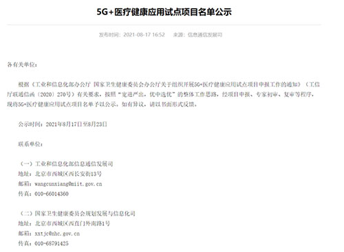 8月17日,中華人民共和國(guó)工業(yè)和信息化部官方網(wǎng)站發(fā)布了“5G+醫(yī)療健康應(yīng)用試點(diǎn)項(xiàng)目名單”,由蕪湖圣美孚科技有限公司牽頭,聯(lián)合蕪湖市中醫(yī)醫(yī)院、蕪湖市高科電子有限公司、安徽中醫(yī)藥高等專科學(xué)校、中國(guó)電信股份有限公司蕪湖分公司、天津理工大學(xué)五家單位共同申報(bào)的《基于5G的慢性病防醫(yī)養(yǎng)全程的智慧中醫(yī)應(yīng)用》項(xiàng)目成功入選此次應(yīng)用試點(diǎn)項(xiàng)目名單,也是安徽省入選“5G+中醫(yī)診療”方向名單的項(xiàng)目。